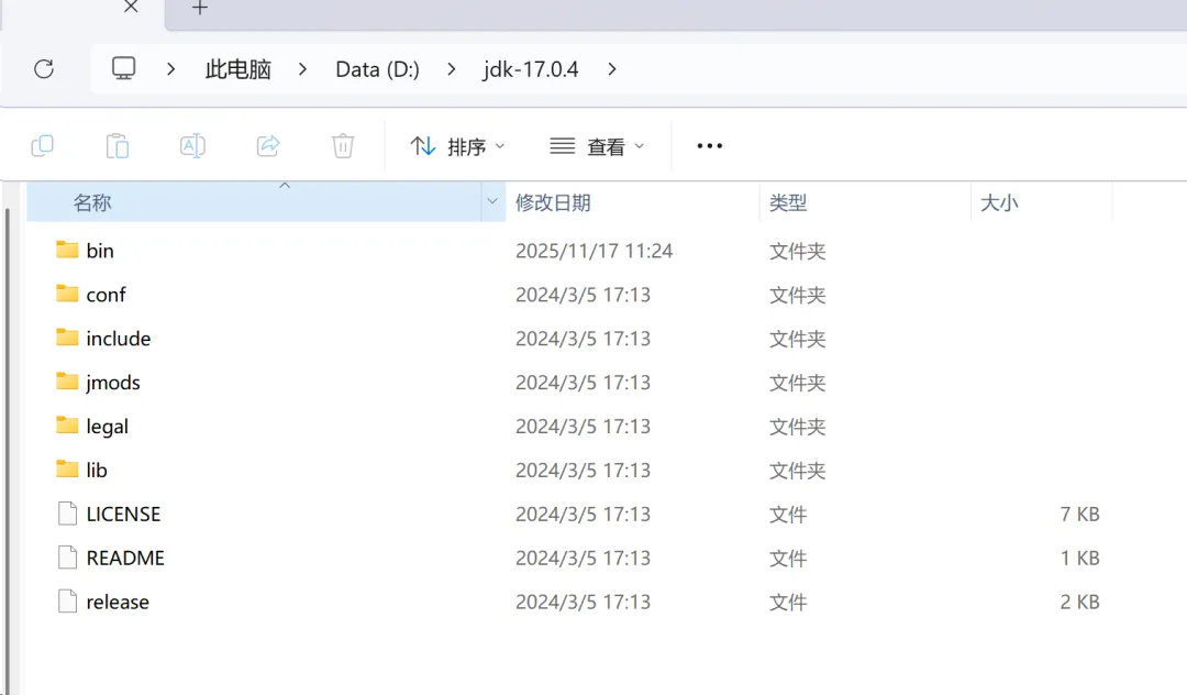 自用的版本是jdk17,因为下载官方jdk需要注册账号什么的比较麻烦,所以我把自用的jdk打包分享给大家下载,下载链接公众号回复“0121”获取