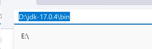 进入bin目录,复制当前目录位置(D:\jdk-17.0.4\bin)