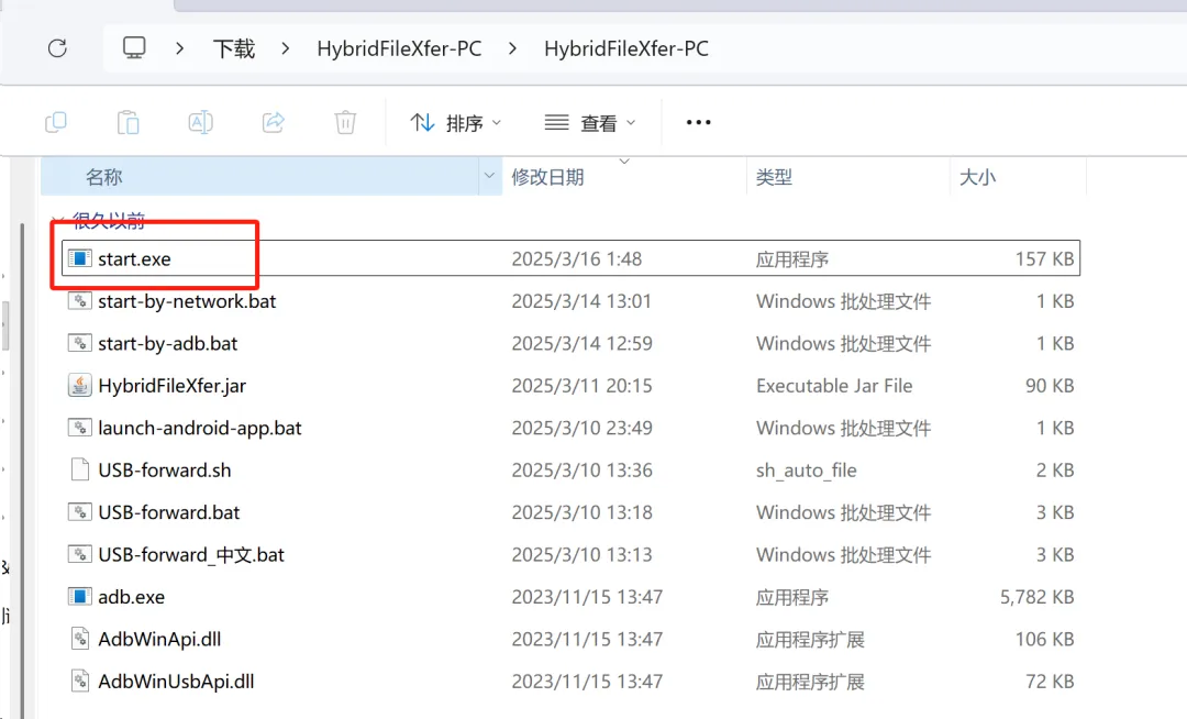 (4)电脑端解压HybridFileXfer-PC.zip,双击“start.exe”