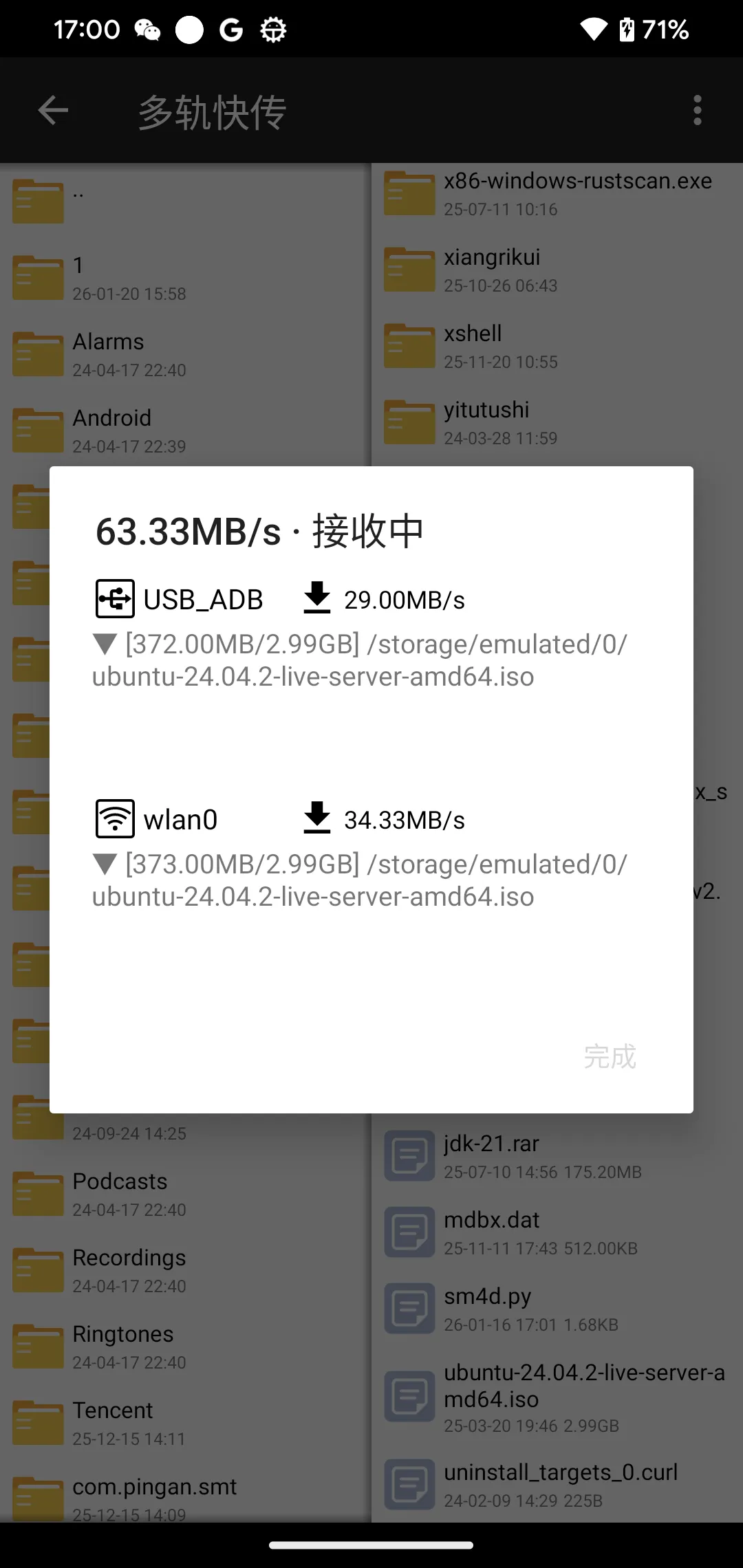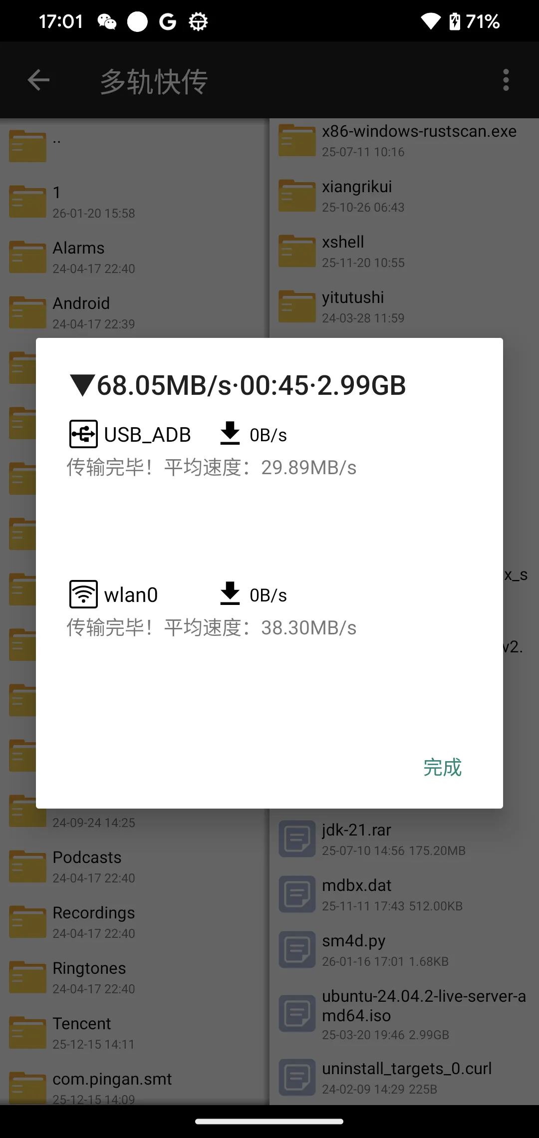 超快速度快传,最终仅耗时45秒传输完成