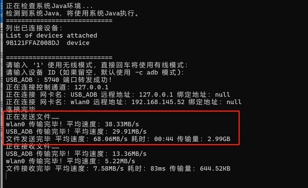 3.ADB+wifi连接(极致速度,推荐,文章以这个方式测试)