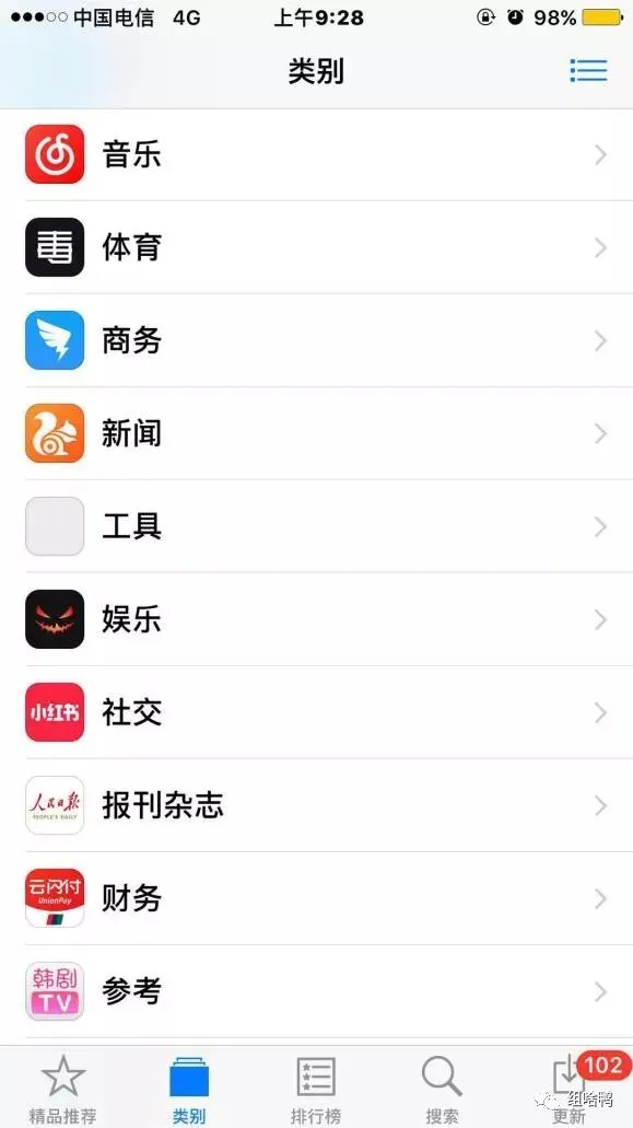 我们进入软件应用商店后,可以直接通过分类类别来查找,也可以直接点击放大镜的图标来搜索软件的名字,下面我们用【QQ音乐】举例,在没有下载过的情况,不同品牌显示的安装提示会不同,苹果手机会显示【获取】,华为,小米等会显示【下载】或者【安装】