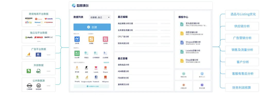 直接对接亚马逊、shopee等各种跨境平台后台,授权下就可以把后台数据自动取出来 -