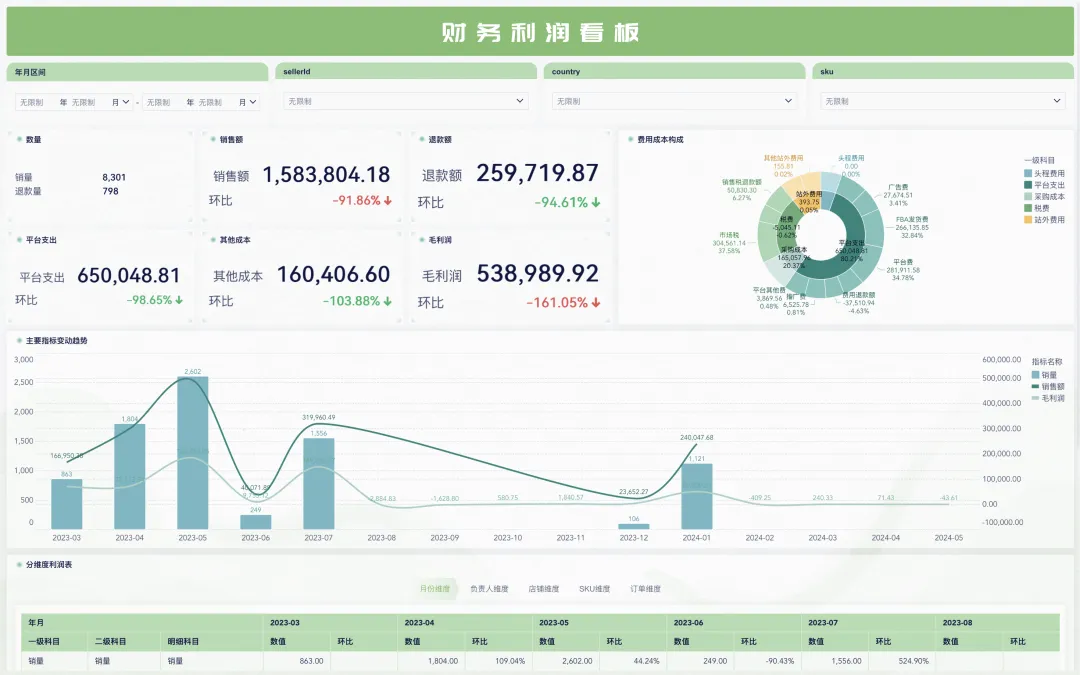 基于亚马逊后台结算报告的二次分析看板