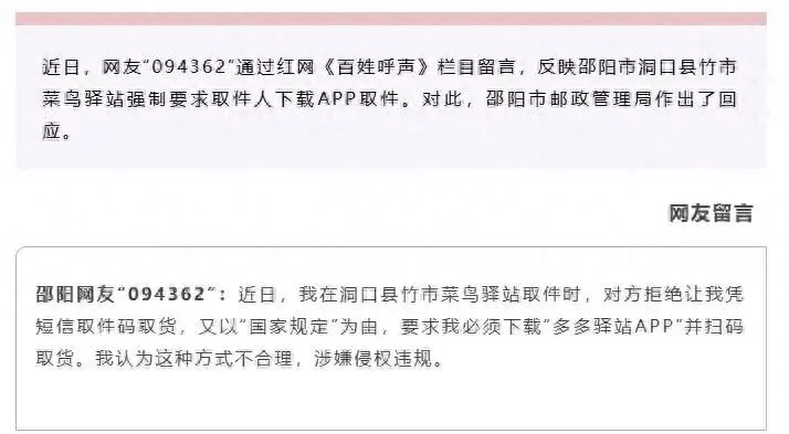 邵阳:“快递站要求必须下载APP才能取货”,回应来了