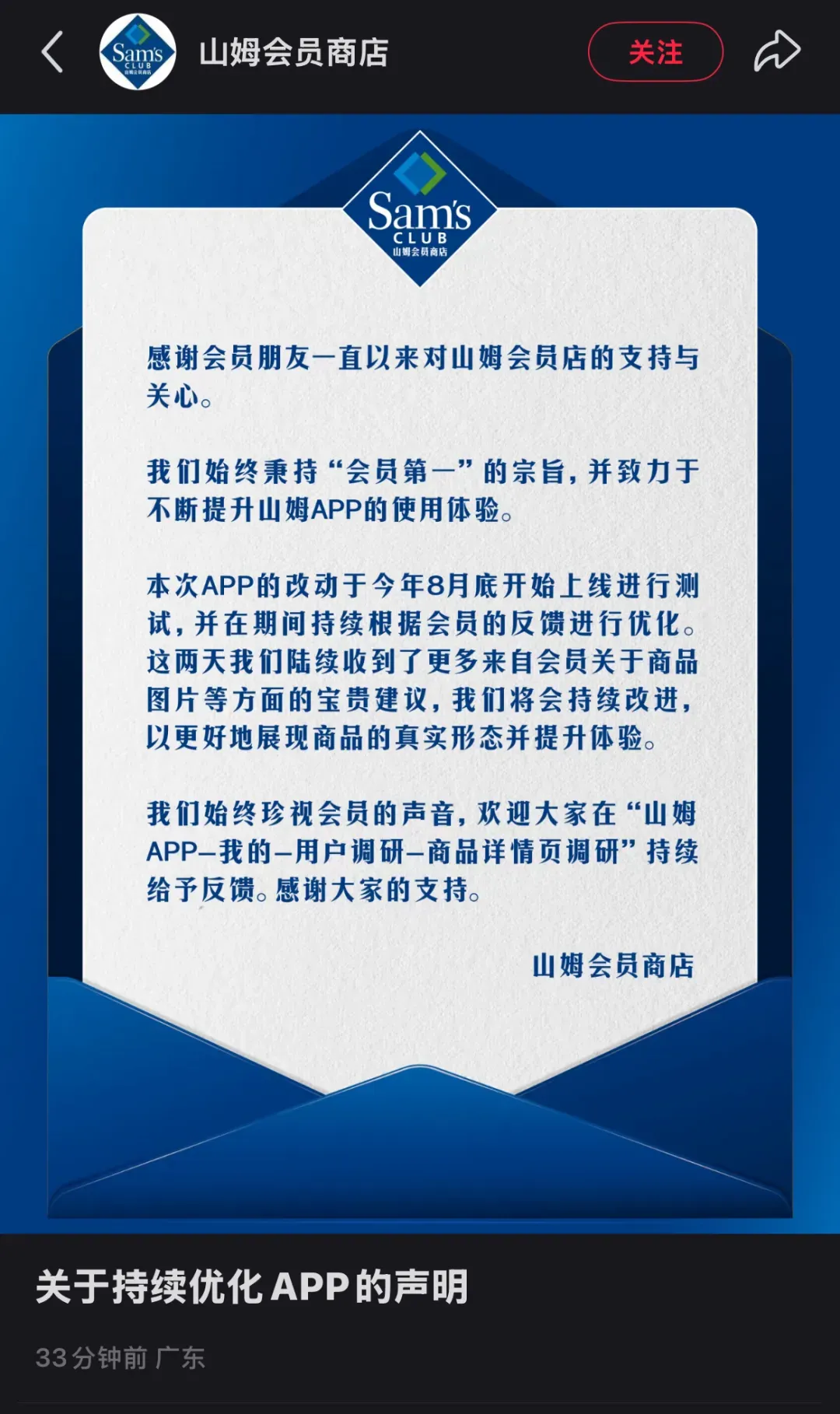 山姆APP被差评刷屏?回应来了