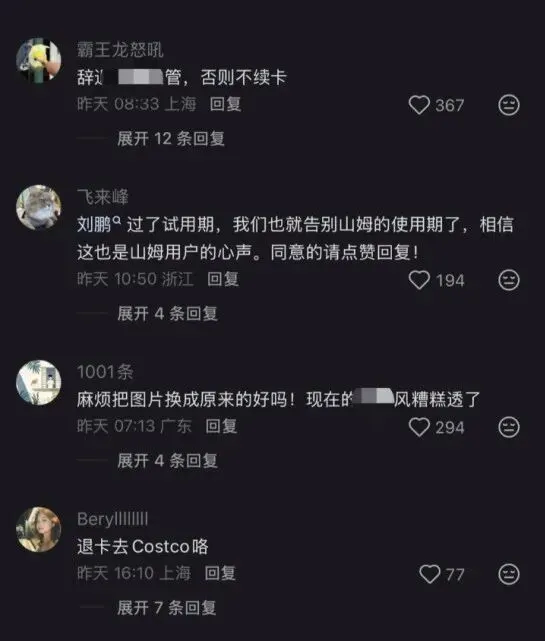 在山姆的社交媒体和APP评论区,“退卡、差评”等类似的评论正在持续刷屏。