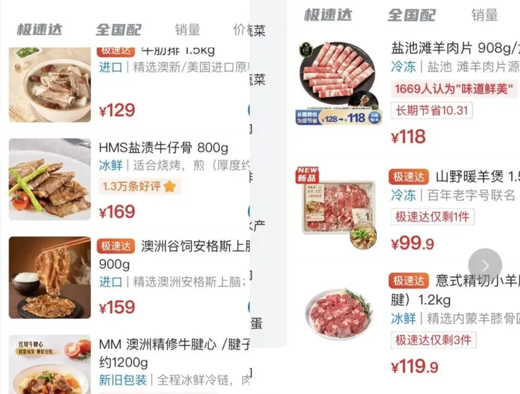 不仅如此,一些原本展示生鲜肉类的商品图中,竟直接使用了烹饪后的熟食成品图。