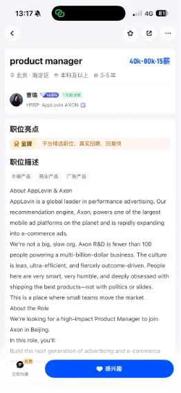 核心岗位招聘:AppLovin 北京分公司正在高薪招募“广告算法工程师”、“产品经理”、“解决方案工程师”。