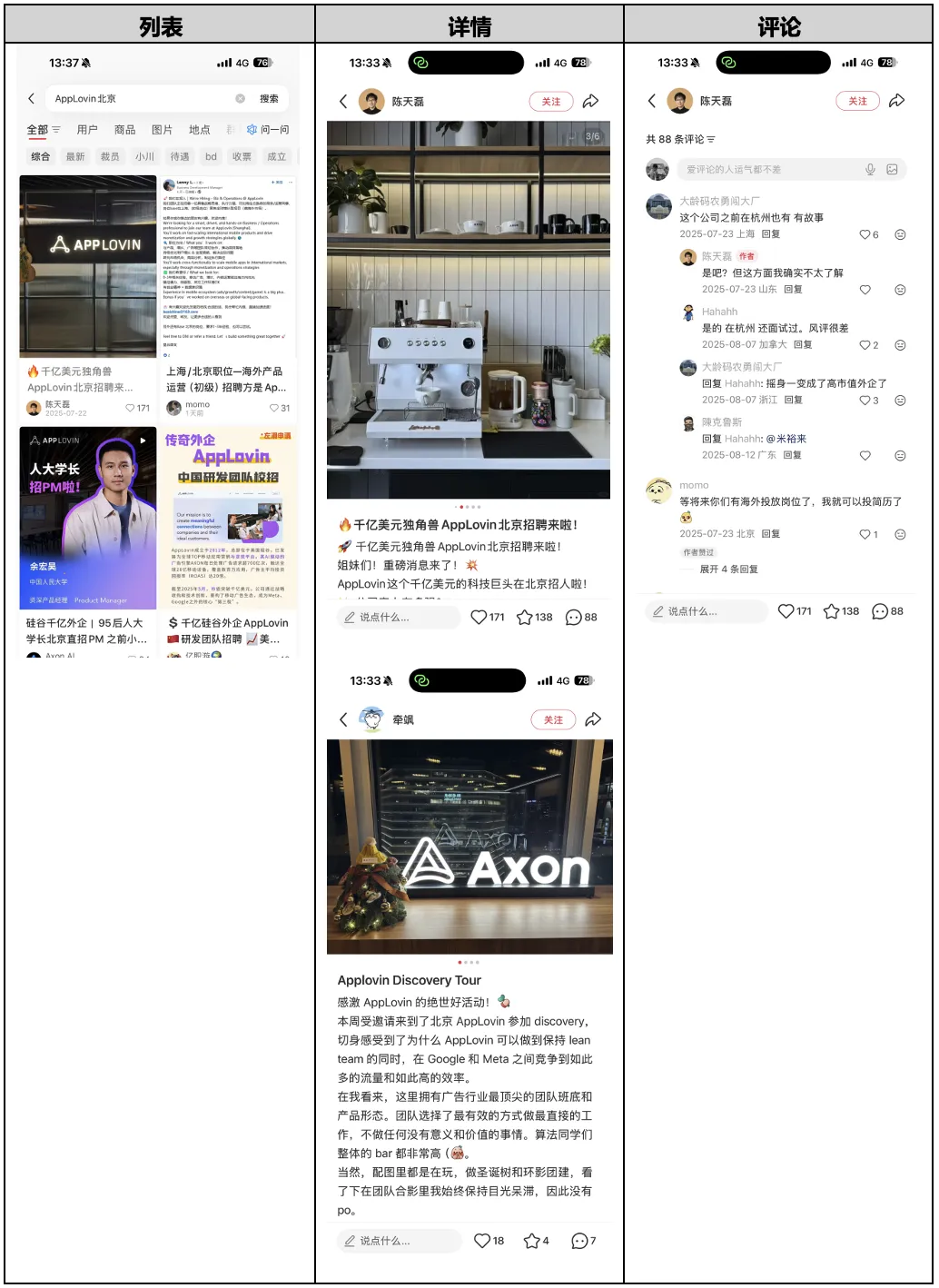 员工自曝:员工在社交媒体晒出北京办公室的活动,标签包括“Axon China Team”、“千亿市值独角兽 AppLovin 北京招聘”。