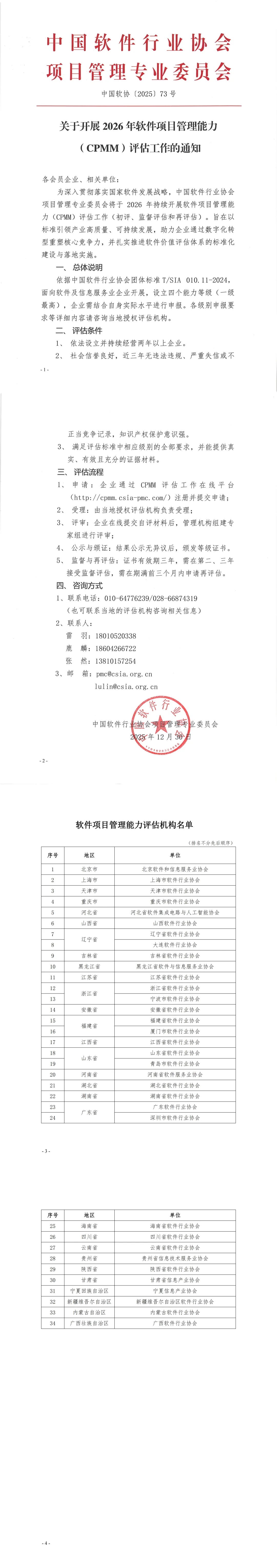 【行业资讯】关于开展2026年软件项目管理能力(CPMM)评估工作的通知