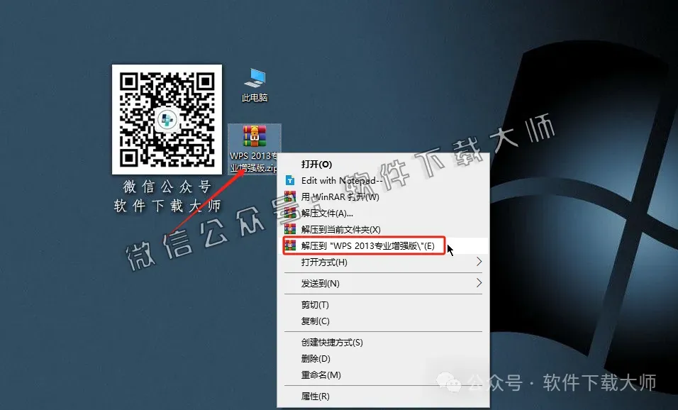 1.解压安装包:①鼠标右击【WPS2019专业增强版_v11.8.2.12055_永久授权版.exe】压缩包②选择【以管理员身份运行】(亦可用电脑上安装的解压软件(如:360压缩)解压)。