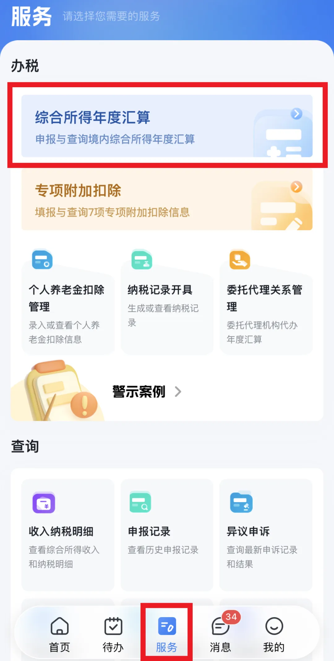 通过“综合所得年度汇算”功能,可以便捷办理个人所得税综合所得汇算清缴纳税申报。