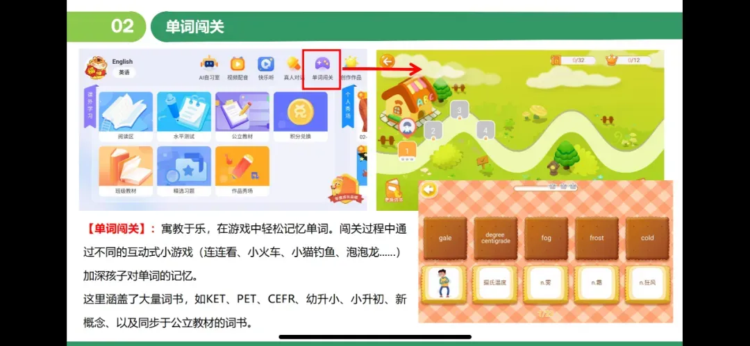 涵盖从一年级至九年级各年级各版本学校公立英语教材,方便孩子在家也能及时复习巩固学校课本里的英语知识。