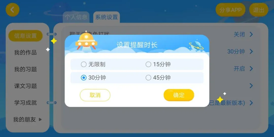 2.护眼功能:可设置app使用时长,限制孩子看屏幕的时间。