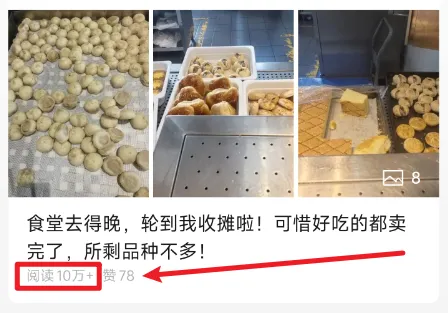 你看我发的这个食堂肉包子的帖子,就是几张照片加一段话,爆了10W+阅读,收益是在500左右。