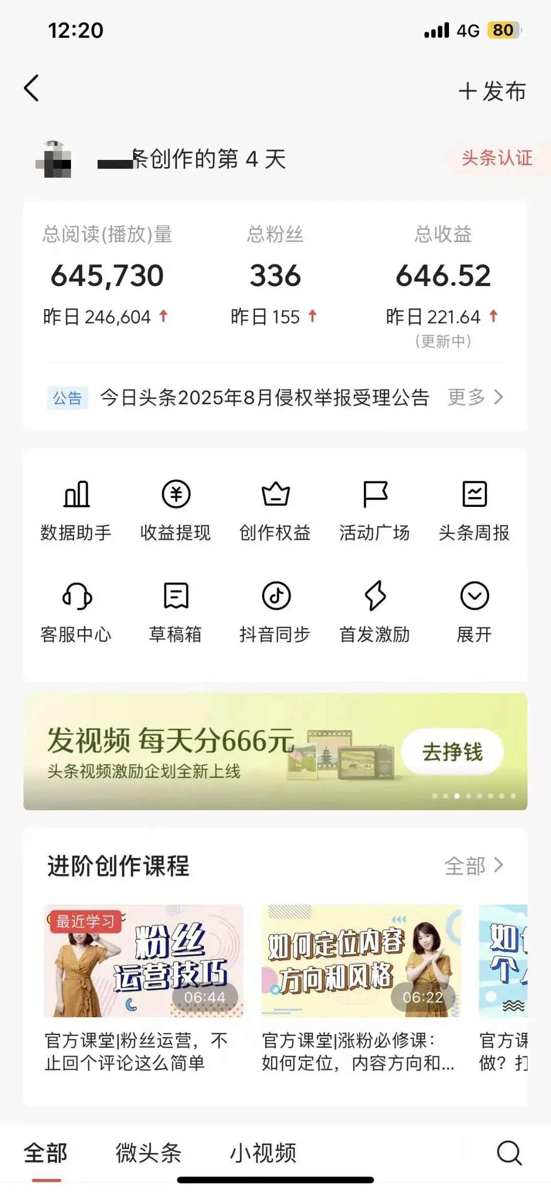 改完后的文章,看看哪儿不通顺的稍微再改改,重新配个图。标题模仿原文也行,让AI给你根据内容起个也行,最后发到头条号上,阅读量越高给的收益就越高。