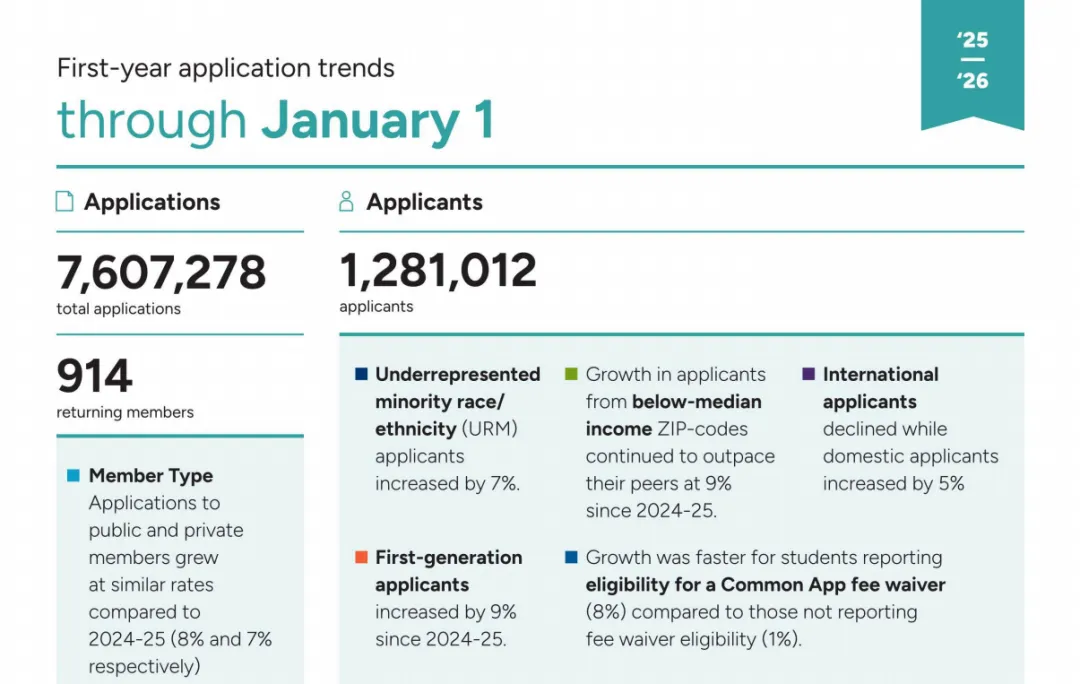 对于每一个关注美本申请的家庭来说,1月16日是一个值得标记的日子。随着Common App发布的截止到1月1日的最新数据,2026Fall申请季的真实底色正徐徐展开。这不仅仅是一串数字的更迭,更是全球高等教育竞争格局的一次深刻重塑。