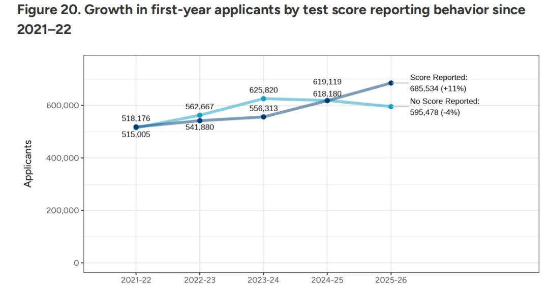 这意味着,曾经那个“没有高分也能冲刺名校”的窗口正在加速关闭。未提交标化的学生人数在缩减,而提交者的比例在回升,这向所有中国家长释放了一个明确信号:标化成绩依然是美本申请中含金量最高的“敲门砖”,想要在激烈的竞争中脱颖而出,硬核的学术实力不可或缺。