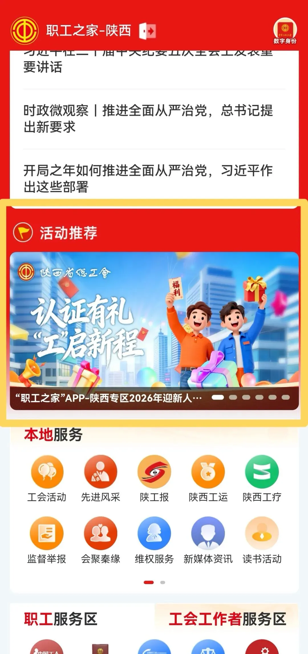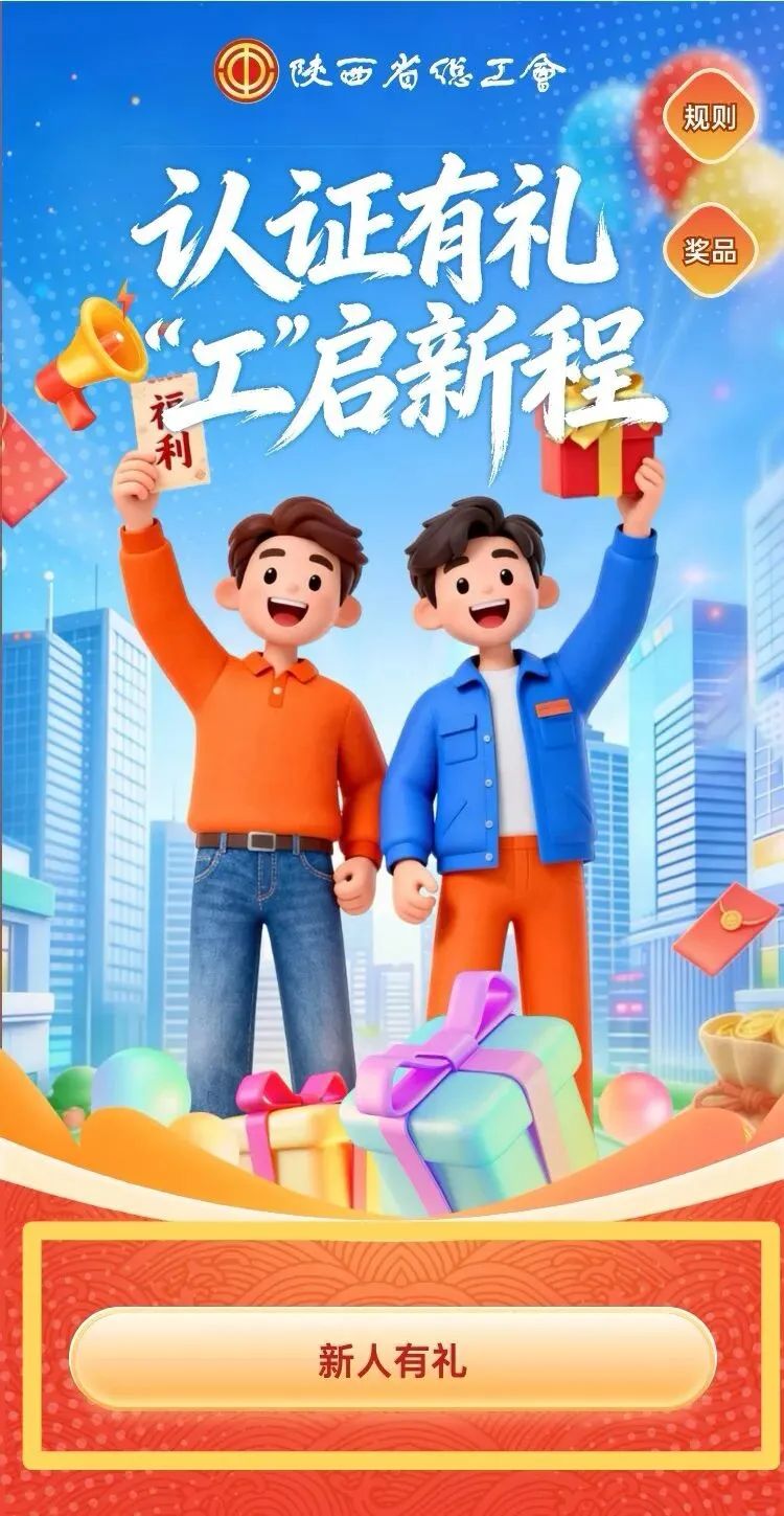登录“职工之家”APP,左上角选择陕西专区,在活动推荐专栏,点击“认证有礼,‘工’启新程”页面即可参与活动。