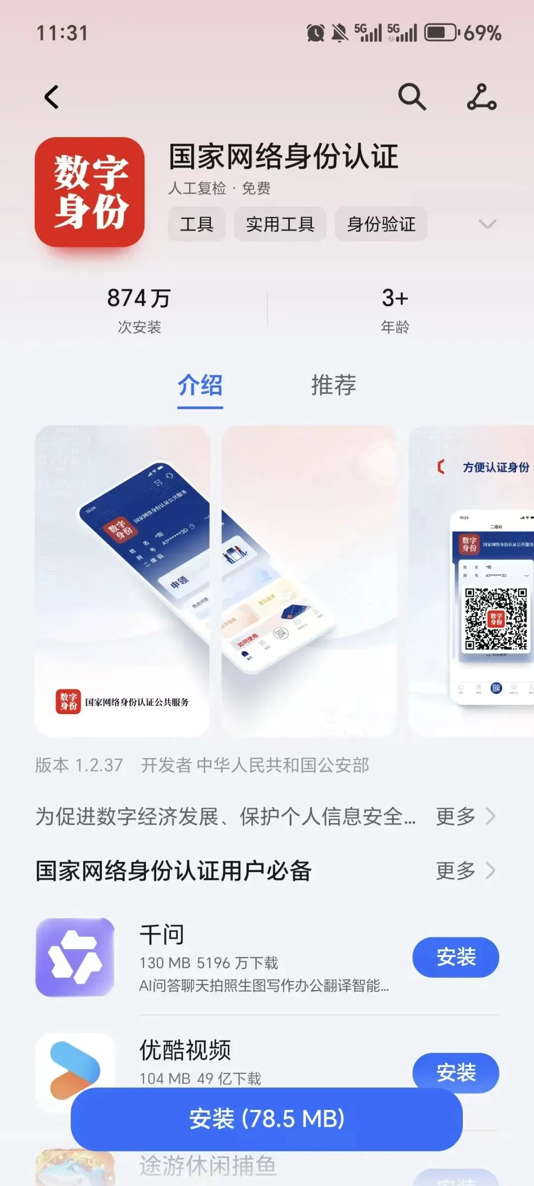 使用国家网络身份认证App进行人脸验证,需要提前下载国家网络身份认证App并申领网络身份证。