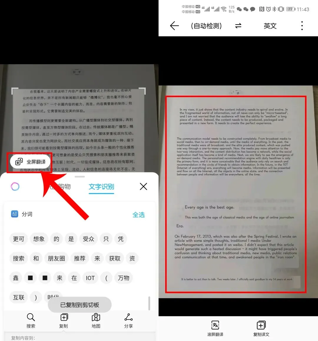 华为手机新技能:双指长按2秒,纸质文档秒变电子版!