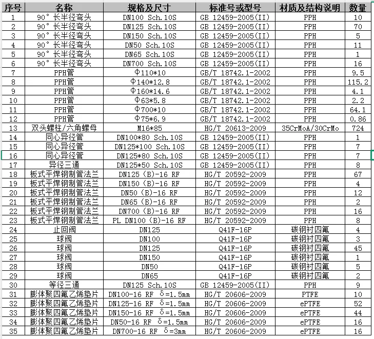 我们正常绘制完PID图以及平立面布置图后根据每个管道号编写每个管段的材料表,我编写的材料清单如下: