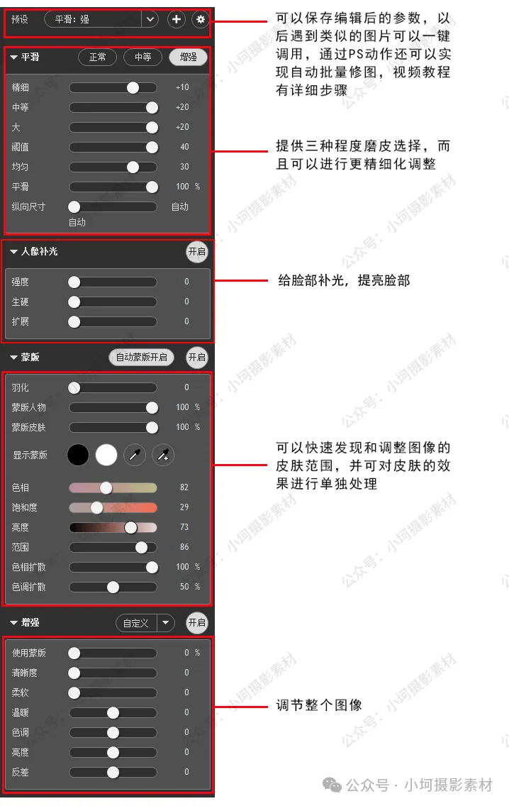 它可以帮助我们对人像中的头发、眉毛、睫毛、皮肤等部位进行平滑