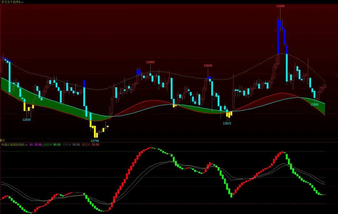 凤凰红绿趋势幅图:红绿多空柱,趋势线