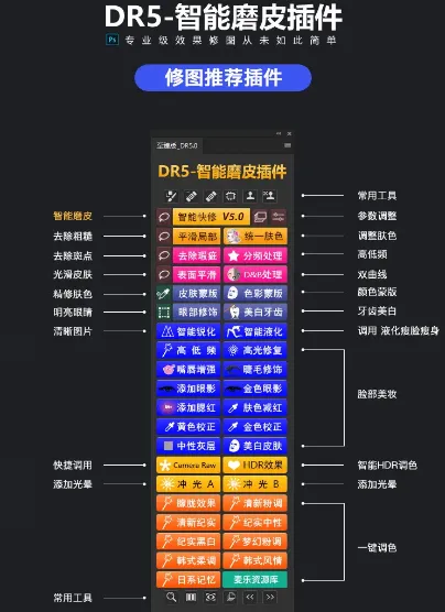 人像磨皮神器DR5:一键磨皮,让你的人像作品瞬间变得像婴儿肌肤一样细腻光滑,告别粗糙感,从此走上人生巅峰!