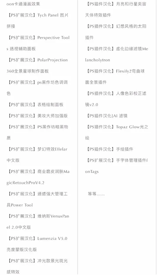 除了以上分享,我还为大家准备了PS各种插件、动作、笔刷、字体的合集。这些插件都是全网最新稳定激活安装包,一键安装激活永久免费使用。让你的修图工具箱更加丰富多样!