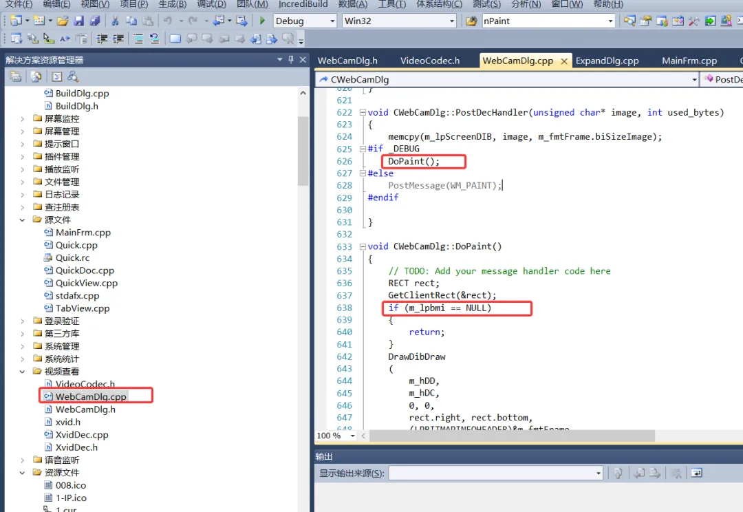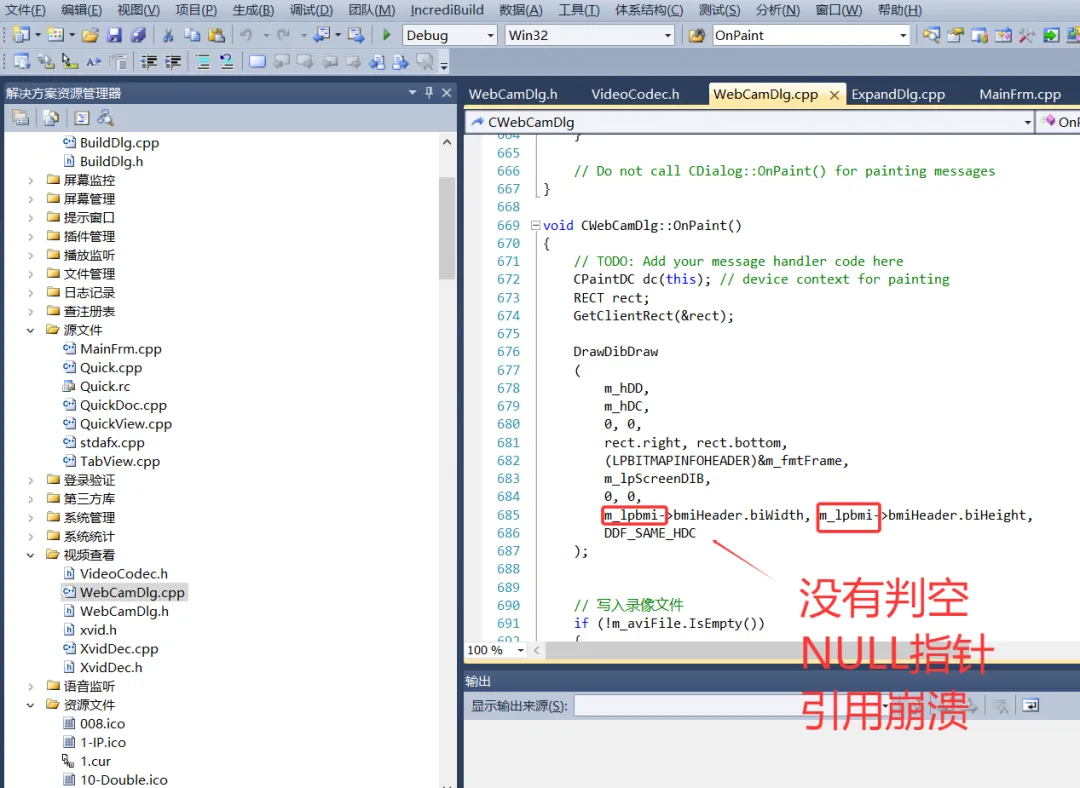 m_lpbmi是指向BITMAPINFO对象的指针,表示当前摄像头一帧画面数据,当电脑不存在摄像头设备时,debug版本做了对m_lpbmi判空操作,因此没啥问题。