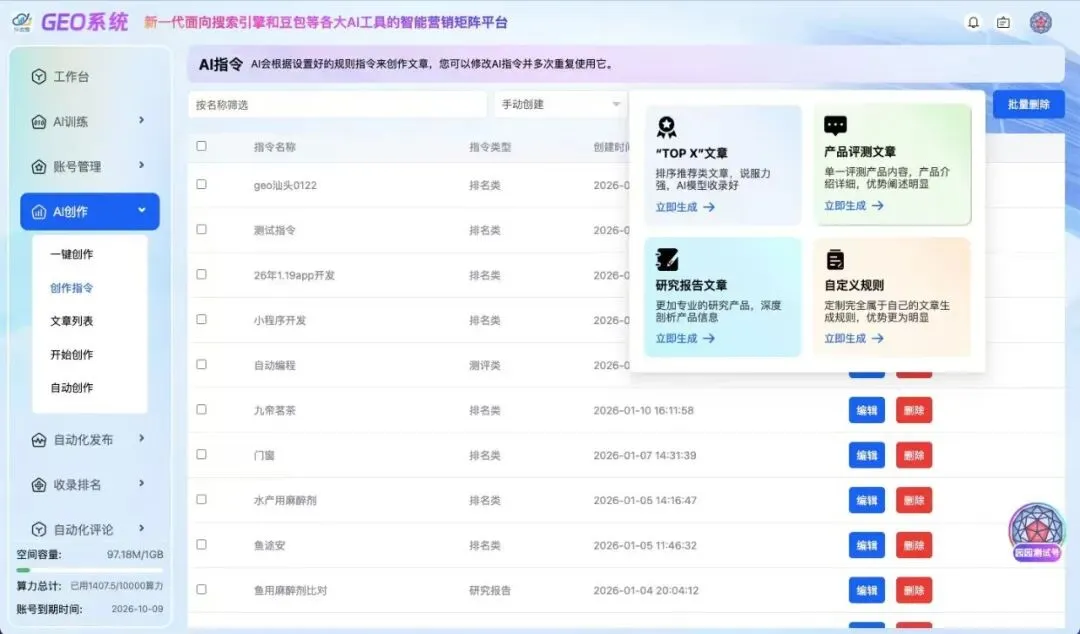 利用AI指令生成的文章指令,采用系统内“TOP文章”创作模式,自动批量化生成排行榜类型文章,同步至官网知识库、今日头条、网易、百家号、各大权威媒体、以及垂类平台。并且实时地跟踪AI回答,进行策略优化。