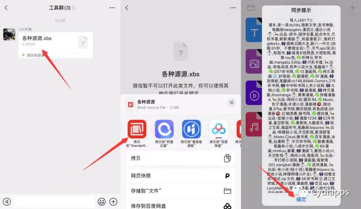 将书源文件(json或ibs)传输到苹果手机(QQ或微信)