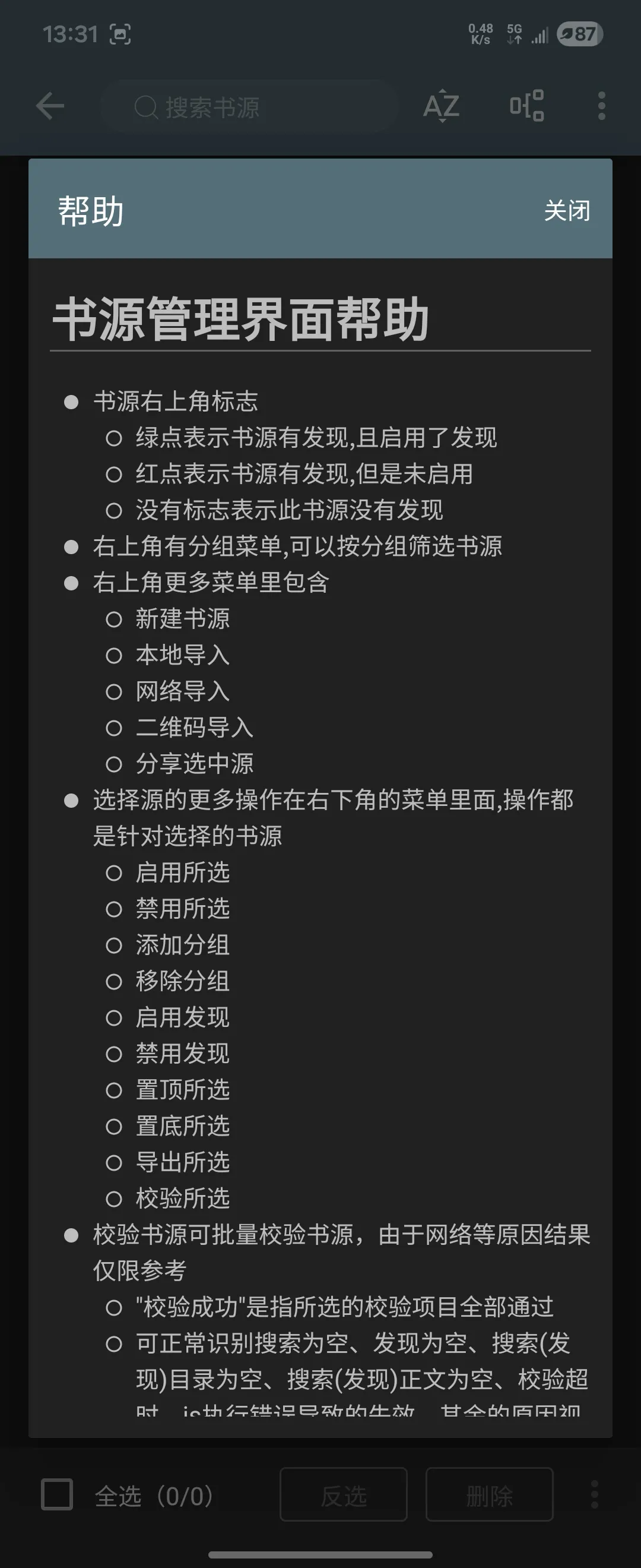 提醒:最新系统可能会遇到点击“书源管理”软件闪退的情况,