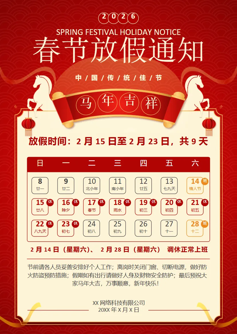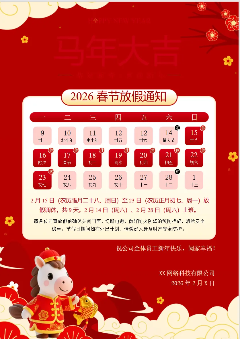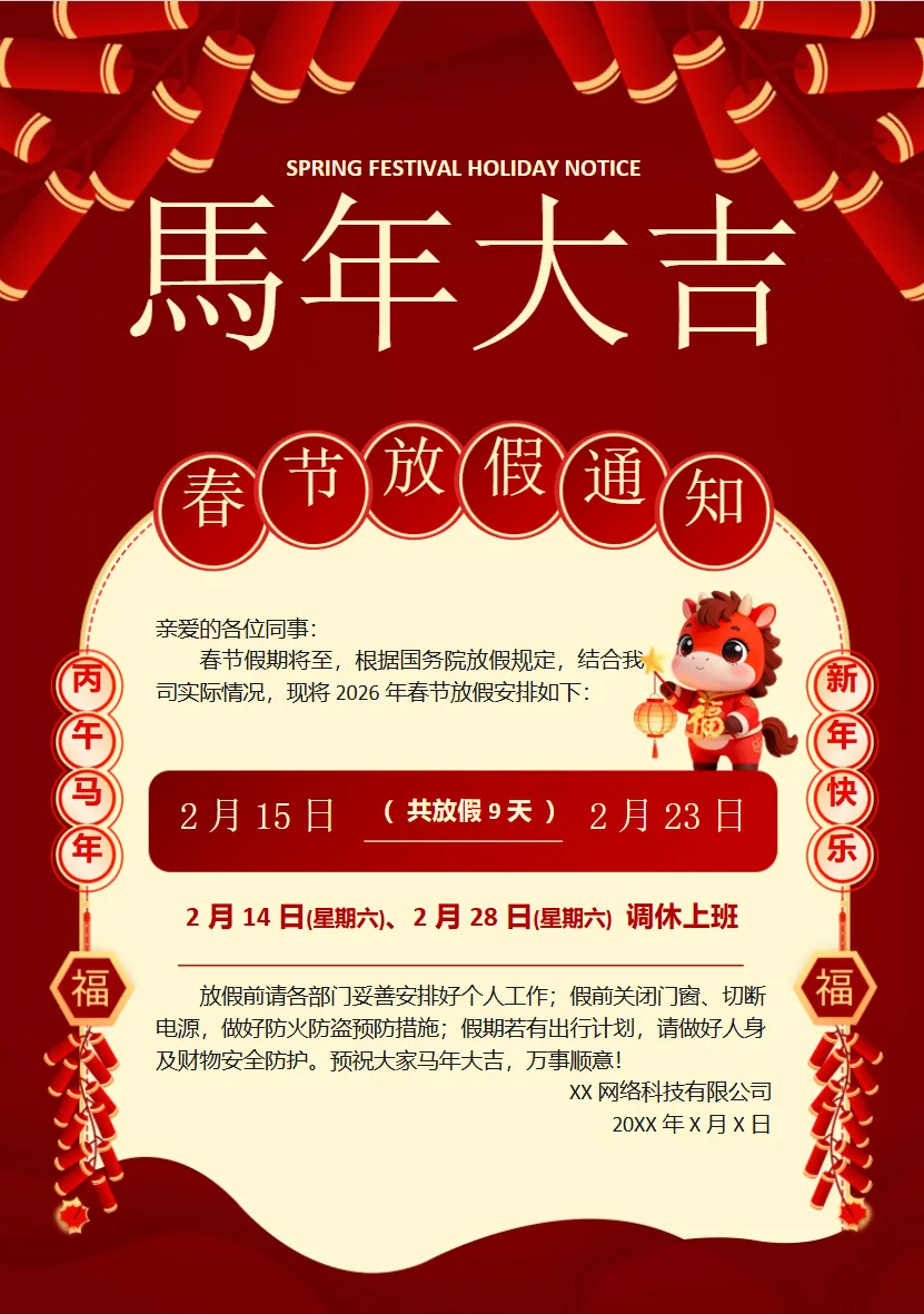 2026马年春节放假通知免费分享 | word可编辑