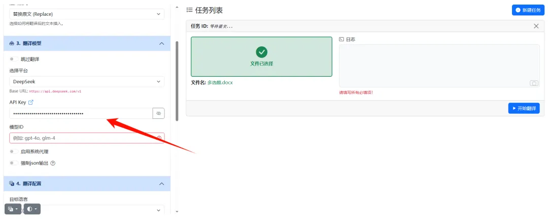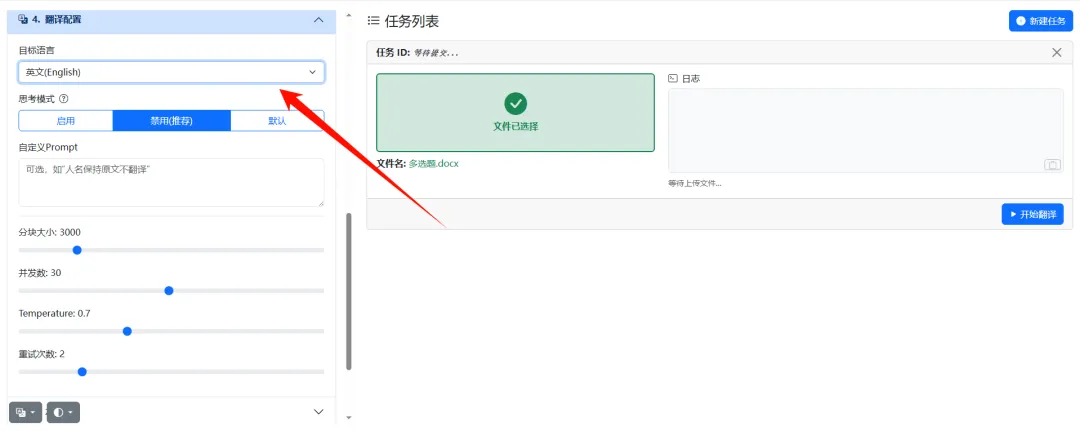 配置完成后,就可以导入需要翻译的文档。