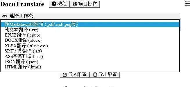 回到界面工作流的位置选择翻译类型,是纯文本翻译,还是文档翻译等等。