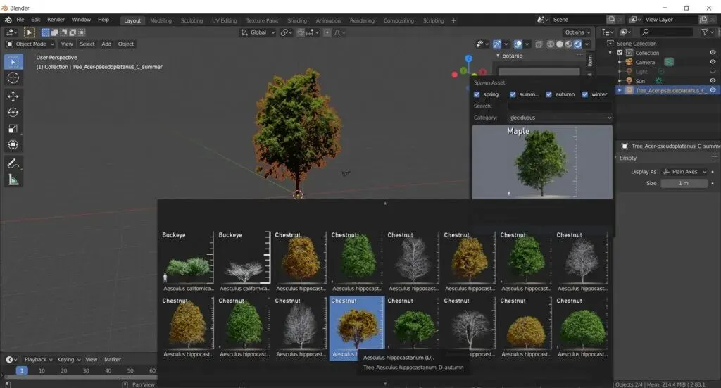 自然是多变和随机的,因此,尽管让每棵树都是唯一的,但添加了一个功能来自动随机化所选资源,以便它们的旋转和比例不同,从而呈现出变化的外观。