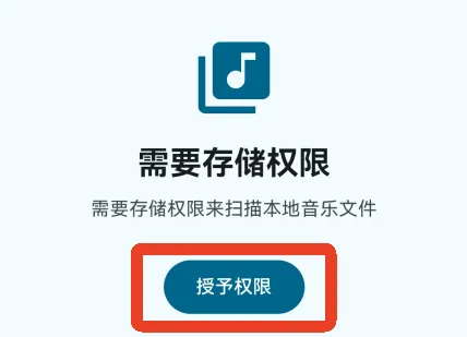 2、点击【授予权限】,需要授权才能扫描手机内的本地音乐文件。