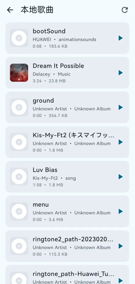3、扫描的过程会有一点长,需要耐心等待一会。扫描完毕后不但会显示音乐文件,录音文件也会被识别到。