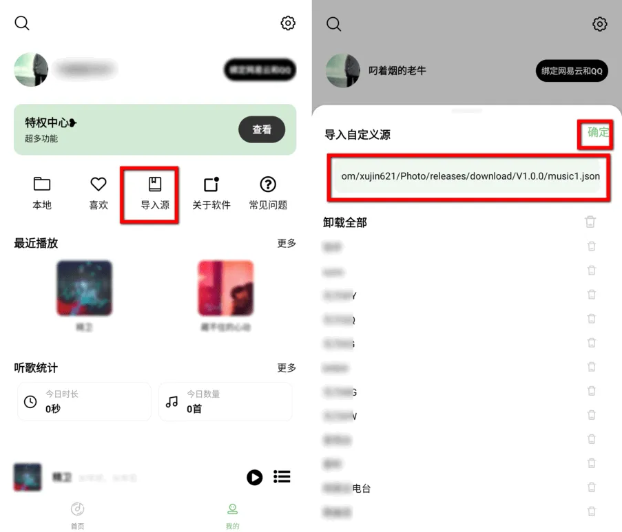 【我的】→【导入源】→输入导入源(等几秒就导入成功了)
