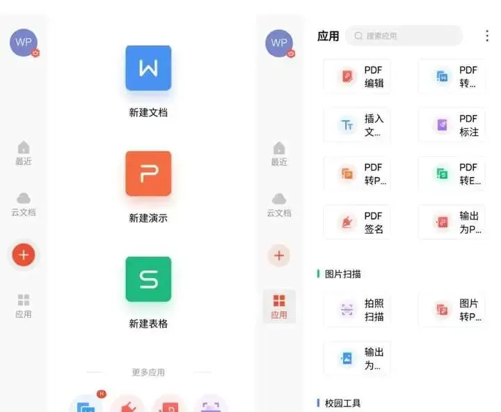 常见的文档、表格、PPT自然都有,PDF编辑、转换、签名、扫描提取文字/表格这些功能也都能用,真的是打工人救星。