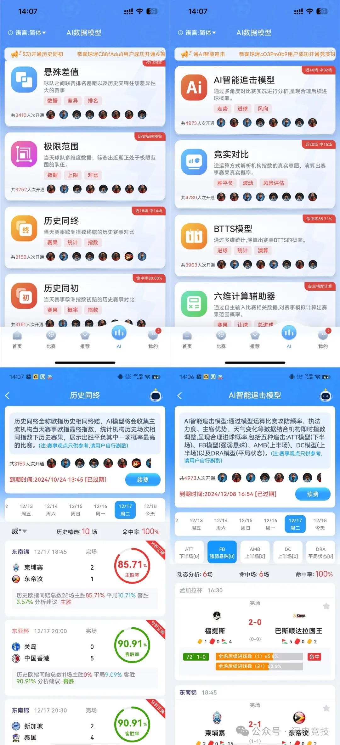 今天给大家,重点推荐一下我们平台的特色AI数据模块,包括AI只能追击模型、竞实对比、BTTS模型、六维计算辅助器、悬殊差值、极限范围、历史同终、历史同初,这些都是目前国内比较先进的预测板块,适合长期深度的玩家,有效的帮助超过一百万用户成功捕捉了比赛的走势风向波动等风险评估,里面的统计、演算都是经过大数据的算法给出的一些比赛方向,人工智能确实能给更多长期在竞猜的球迷更大的帮助!!