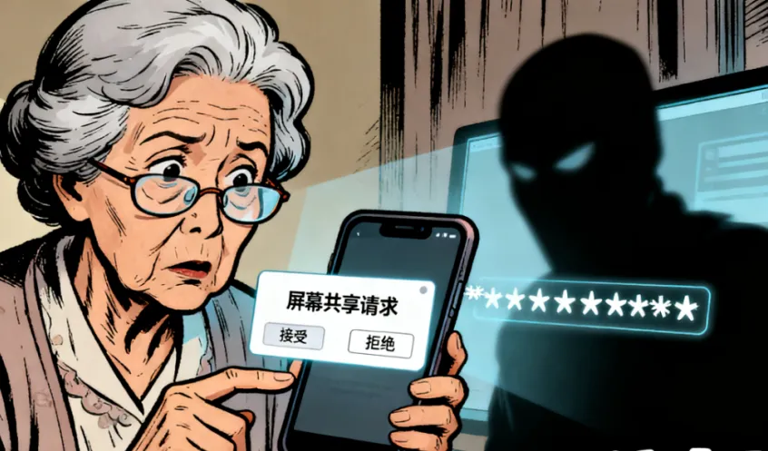 核心环节是以“协助关闭”为名,诱导受害人下载“屏幕共享”或“远程会议”的恶意软件。多数受害人对这类软件的风险认知不足,一旦安装并开启权限,手机便处于被实时窥屏甚至远程控制的危险状态,所有输入密码、接收验证码的操作均暴露无遗。