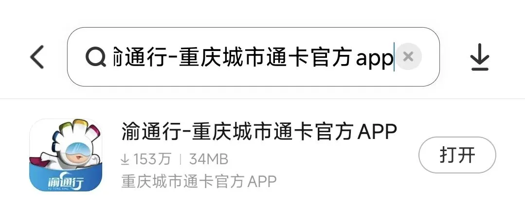 方案二、实体卡充值时拿发票,刷卡乘车后可以用渝通行APP查询记录,在应用商城搜索“渝通行”,长下面这样