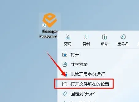 13.在桌面上找到”Enscape Custom Asset Editor“软件图标,鼠标右键点击“打开文件所在位置”