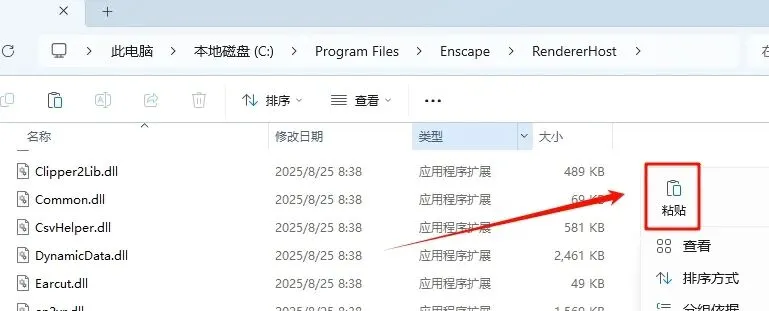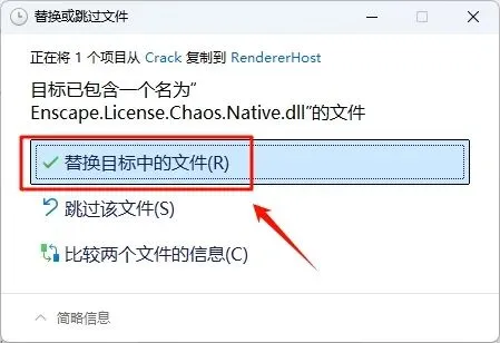 11.返回之前解压的“Enscape 4.10.0.283”文件夹,双击打开“Crack”文件夹,选中“Enscape.License.Chaos.Native.dll”文件,鼠标右键点击“复制”文件夹