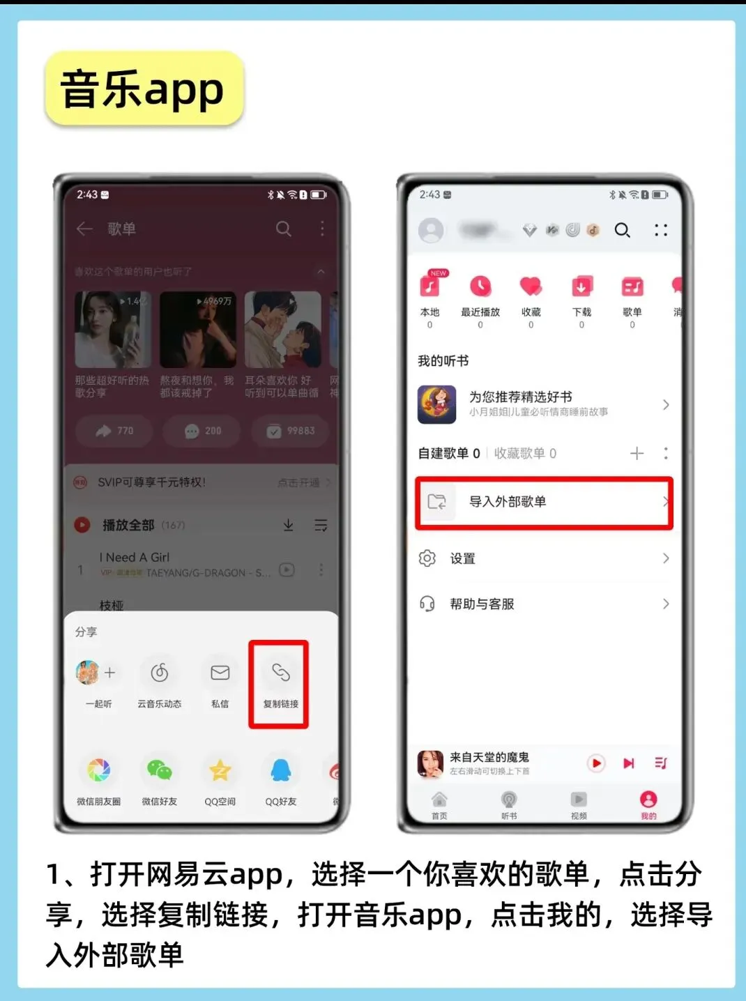 4. 音乐:不用来回切APP,跨平台歌单“一键导入”