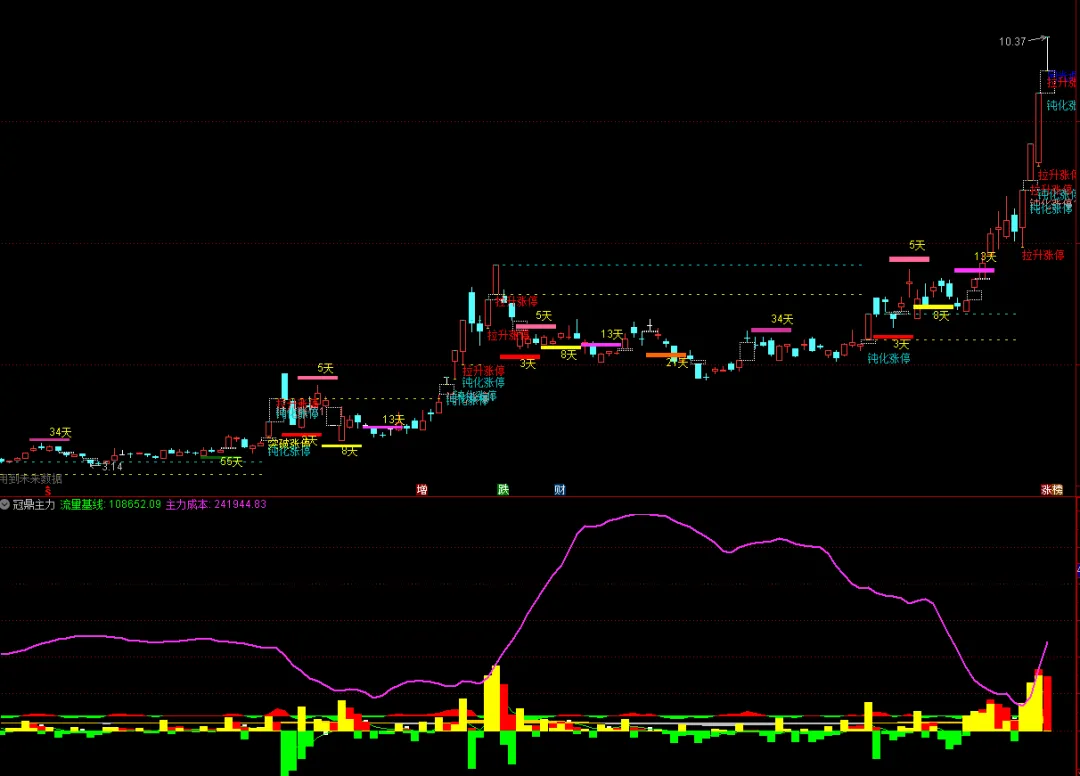 这个指标特别适合中短线波段操作,通过主力资金流向的变化来捕捉主升浪的启动和结束。建议在震荡市和牛市中效果最佳,在单边下跌市中应谨慎使用。